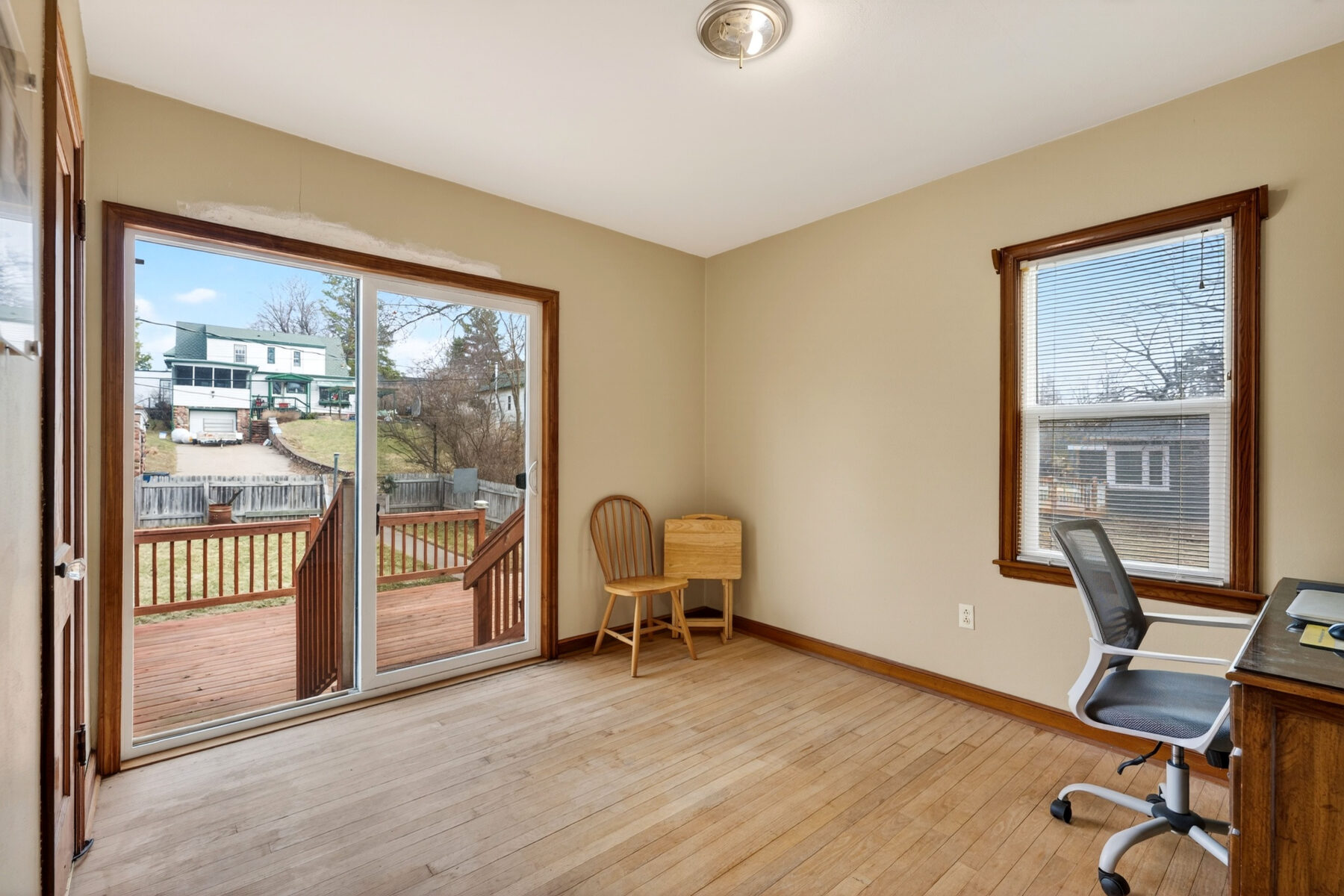 Charming 3-bedroom, 1-bath home in a convenient location close to schools, churches, parks, and shopping. This home offers plenty of space to spread out, including a large upstairs bedroom with book nook and sitting area. Also, a finished basement featuring a bar and shuffleboard—perfect for relaxing or hosting friends and family. You’ll love the character throughout, with original woodwork and built-ins that add warmth and charm. Two bedrooms are on the main floor, and one has direct access to the backyard, making it a great option for a home office or cozy den. Step outside to a fully fenced backyard, along with a two-car garage off the alley and additional off-street parking. With a great layout, inviting spaces, and so much character, this home is easy to fall in love with.